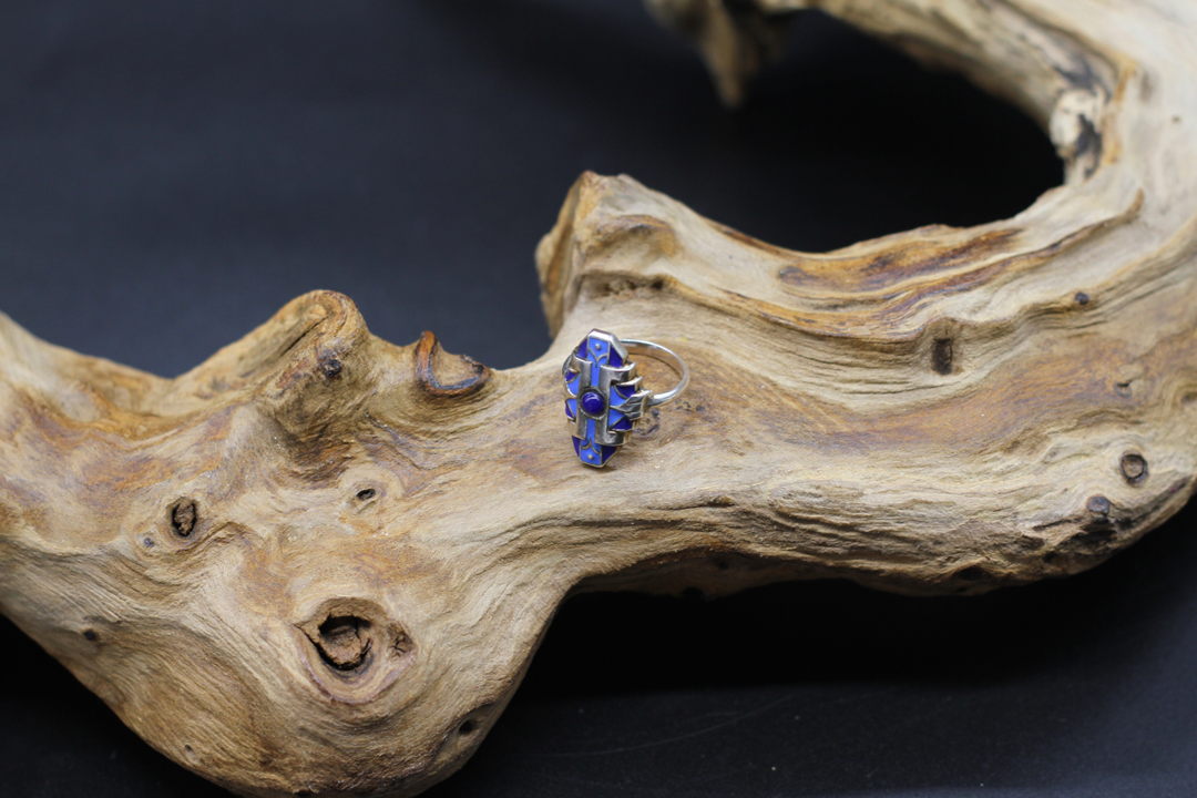 This beautiful hand made ring is an antique master piece. It was made somewhen between the late 19th century and the first half of the 20th century, using 835 silver and the Austrian “Emaille Technik”. Enameling has been used in Austria for jewelry for many centuries. In this technique, a color glass mixture is applied to precious metals under intense heat, ensuring perfect proportions. This style found many admirers, particularly during the Art Deco era. The ring is in a good condition with usual signs of age.