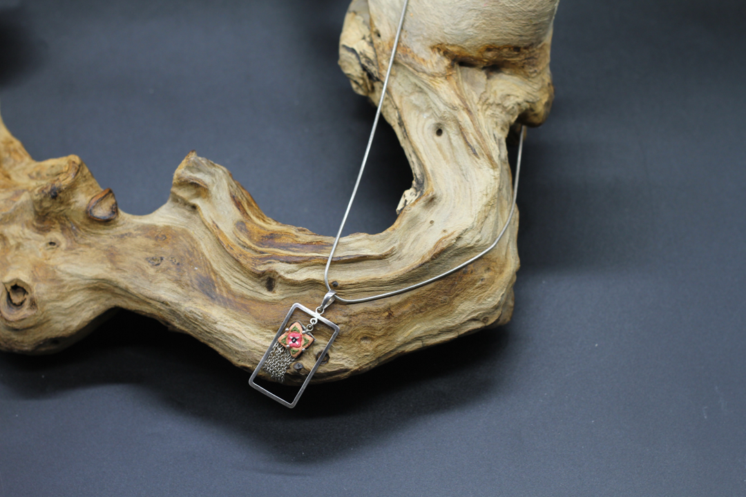 The metal frame of the pendant measures approx. 3,5 x 2 cm. Total length of necklace approx. 45 cm. Watch our Youtube Channel for Video Description