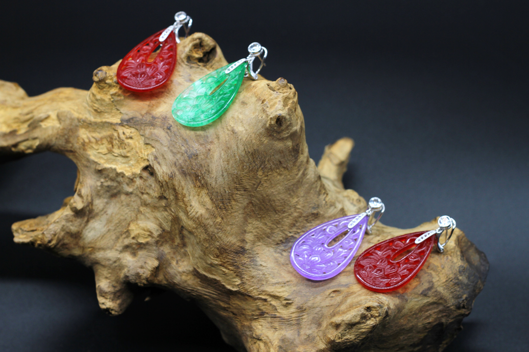 Ein wunderschönes Paar Ohrhänger aus echtem Jadestein, oval, ca. 4 cm hoch und 2,5 cm breit. Geschmiedet aus echtem 925er Silber, verziert mit weißen Topasen. Sehr leichte Ohrringe, ausschließlich aus antiallergischen Materialien gefertigt. Mit Liebe handgefertigt, einzigartiges Design von ARDECO.