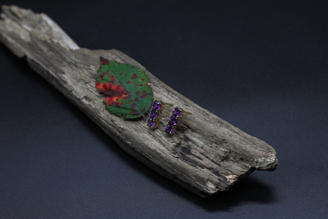 Wunderschöne Ohrringe, handgeschmiedet. Aus Silber 925, 18-Karat vergoldet. Zertifiziert durch ein österreichisches Labor. Durchmesser Naturstein je 5 mm. Gesamtlänge eines Ohrrings: 15 mm. Wertvoller Farbstein: Amethyst.
