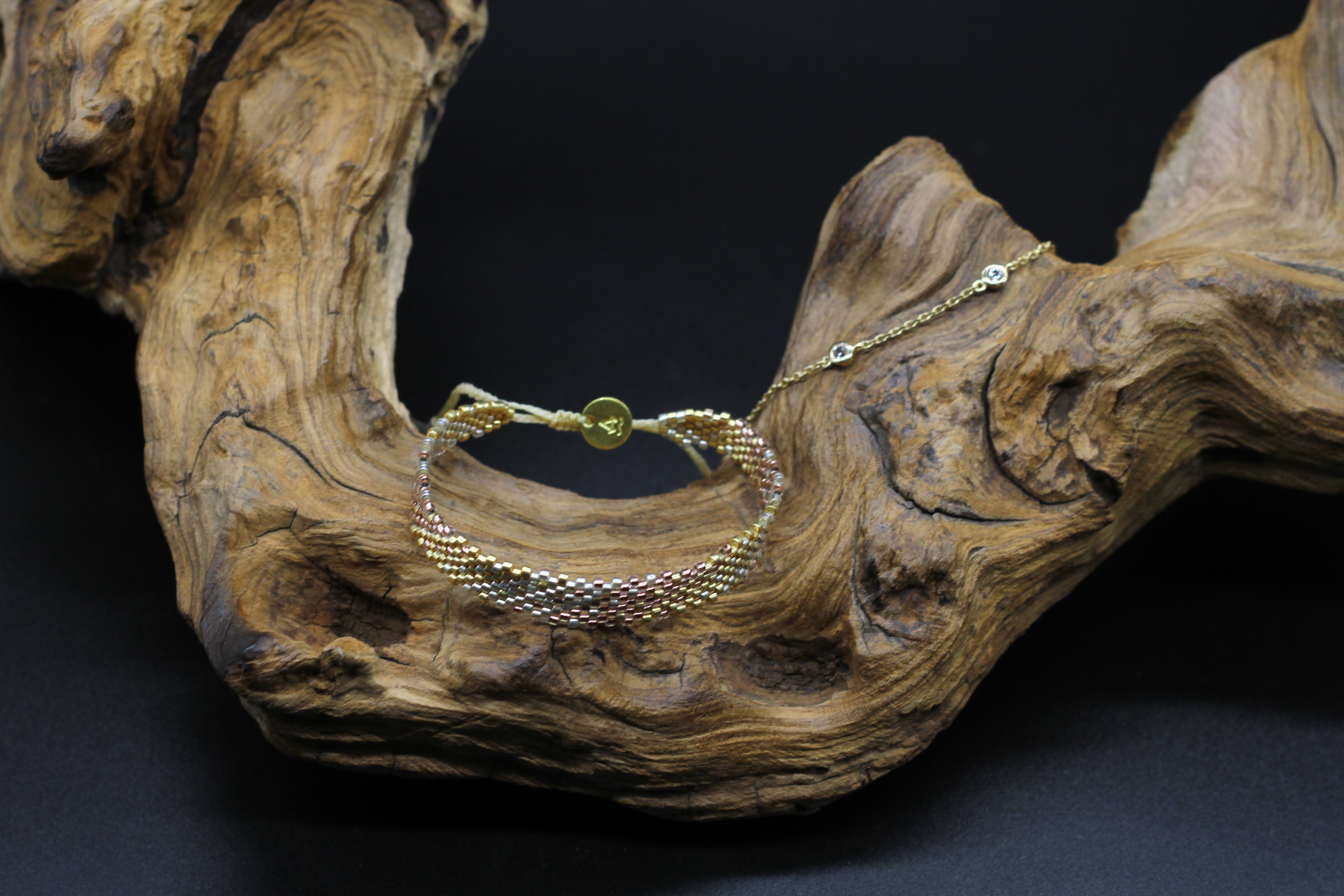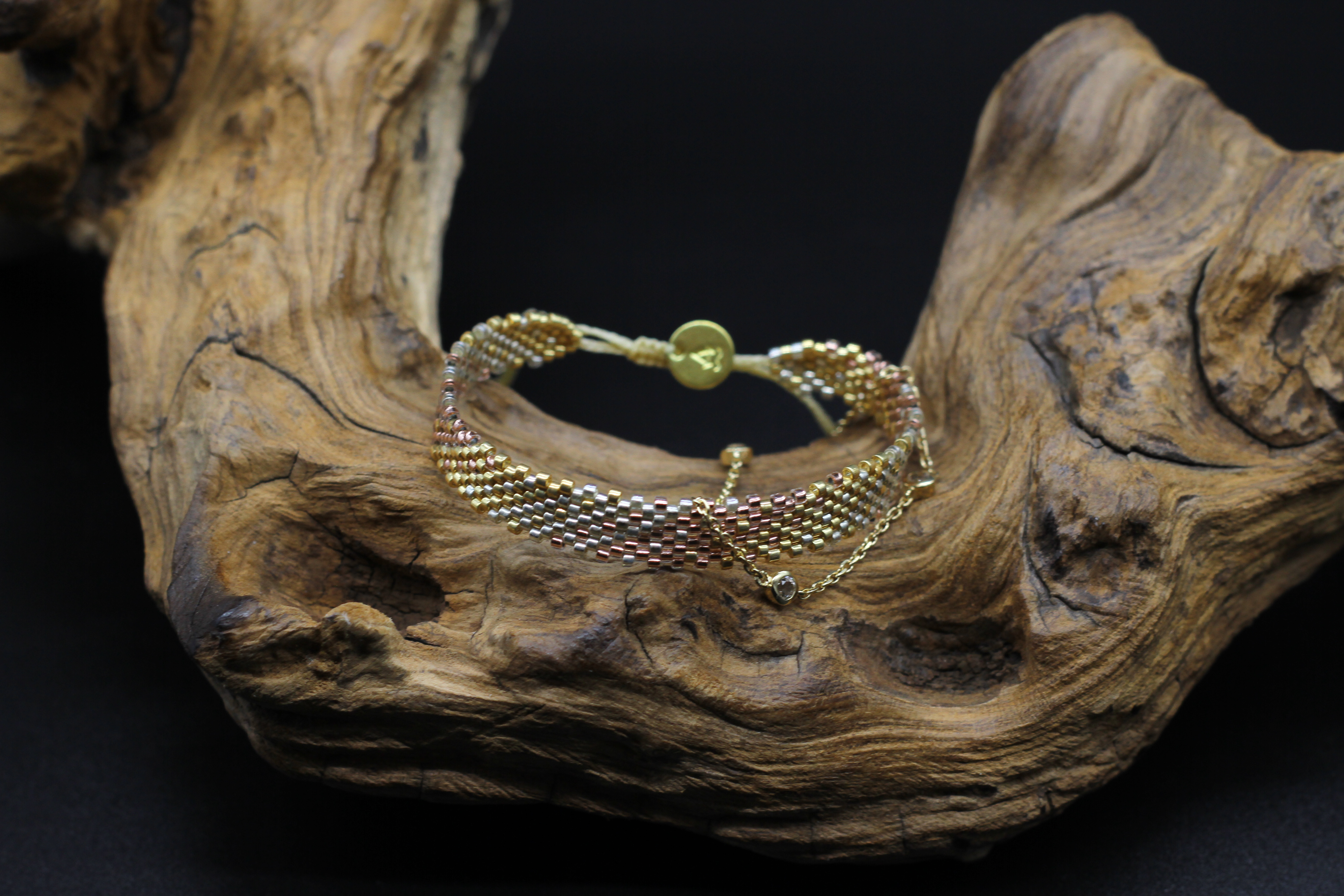 BRILLANTE is a unique color combination of SILVER & GOLD & ROSÉ from ARDECO. This BRILLANTE bracelet is made from 440 hand-threaded Miyuki glass beads. It is lovingly made in Latin America. This handmade, unique piece of jewelry is light, comfortable to wear and has a flexible clasp for all wrist sizes.