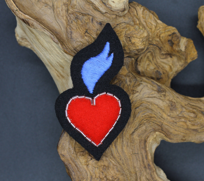 LOVE Brosche KLASSIK handgestickt – 4 Stunden Arbeitszeit in der CASA ARDECO! Handgestickt mit viel Liebe zum Detail. Die Brosche hat auf der Rückseite eine handelsübliche Stecknadel und ist zwischen 5 und 6 cm breit und 9 bis 10 cm hoch.