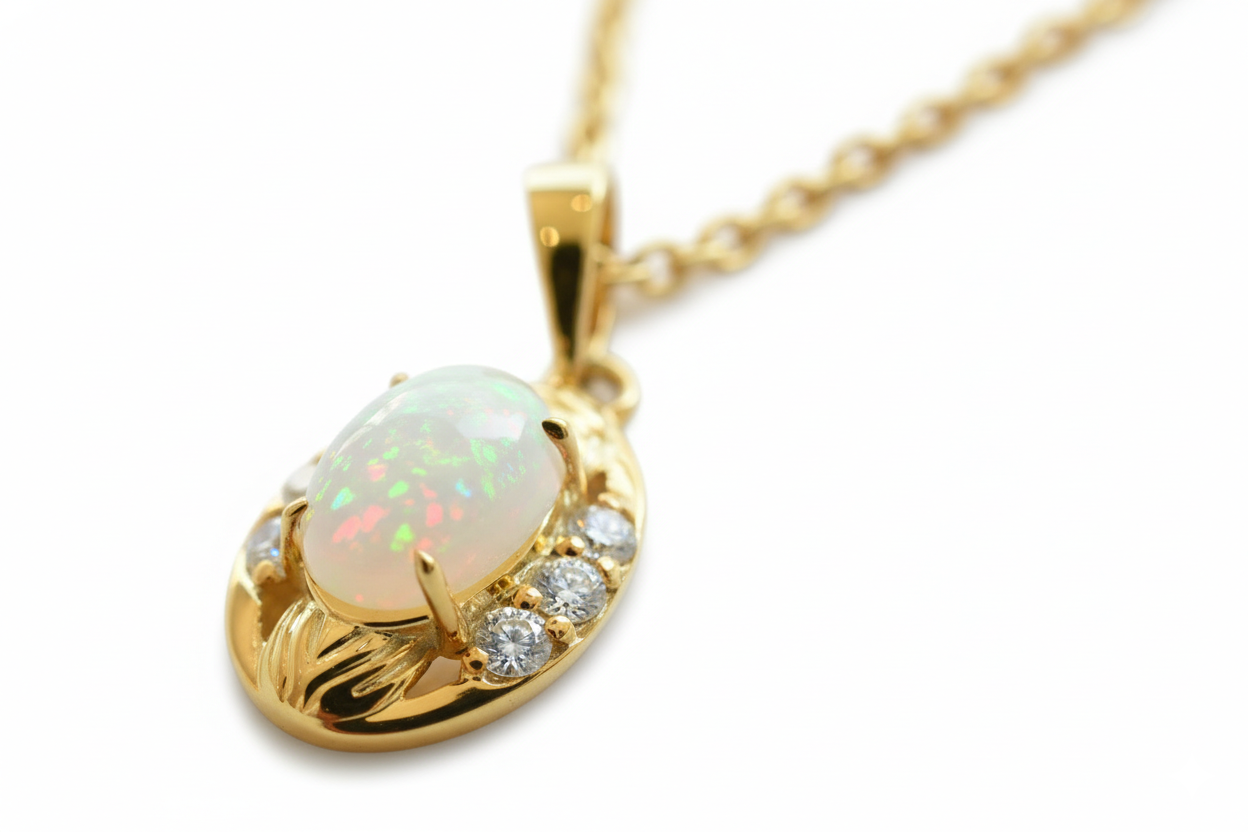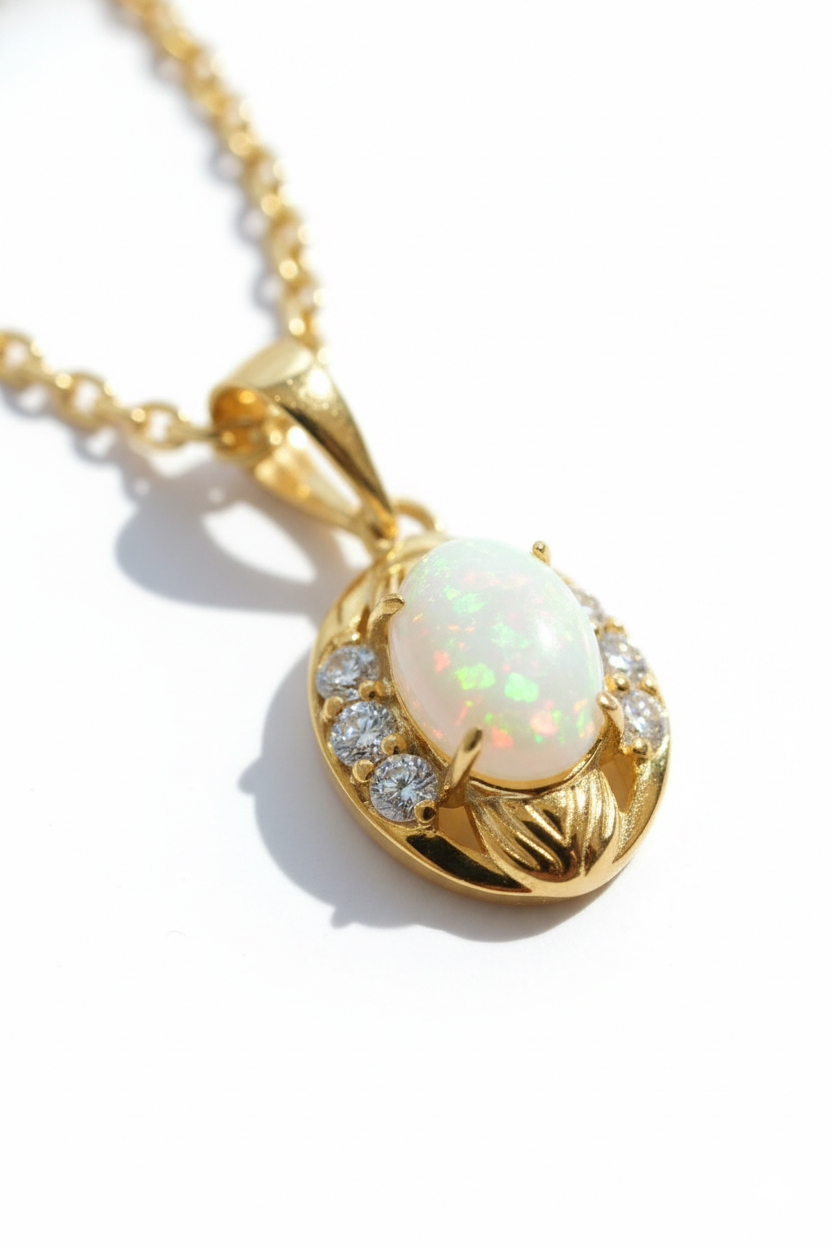 Handmade Scarab Necklace with Ethiopian Opal Stone. Wonderful, every pendant is unique. Best materials real silver 925, gold plated 18 Karat Gold. Hand selected Ethiopian Opal stone in shiny colors decorated with White Topaz stones. Scarab is connected with sun-god Ra since ancient Egyptian culture. It stands for Existence, Development & Growth. It represents the circle of life and death and therefore the Scarab is a protector.