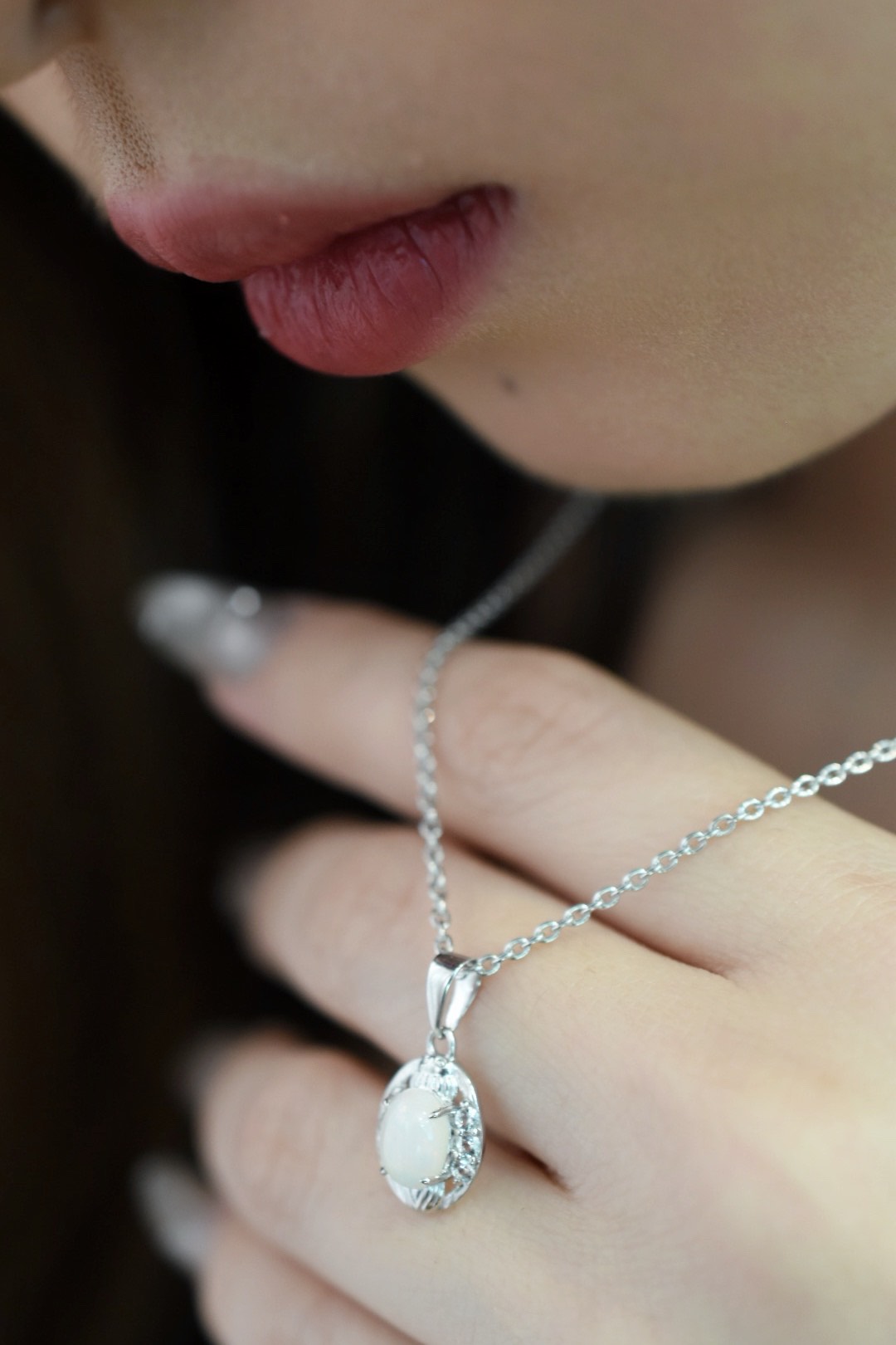 Handmade Scarab Necklace with Ethiopian Opal Stone. Wonderful, every pendant is unique. Best materials real silver 925, rhodium. Hand selected Ethiopian Opal stone in shiny colors decorated with White Topaz stones. Scarab is connected with sun-god Ra since ancient Egyptian culture. It stands for Existence, Development & Growth. It represents the circle of life and death and therefore the Scarab is a protector.
